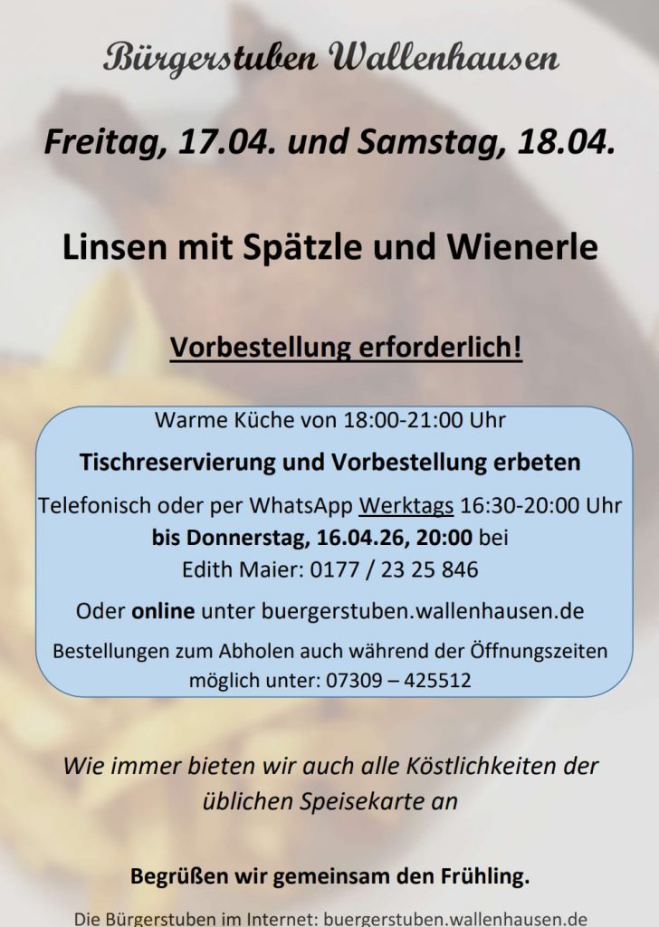 Telefonisch bei Edith Maier unter 0177 2325846 (von Montag bis Freitag zwischen 16:30-20:00 Uhr). Ebenso wenn Sie an anderen Terminen ein Familienfest feiern möchten.